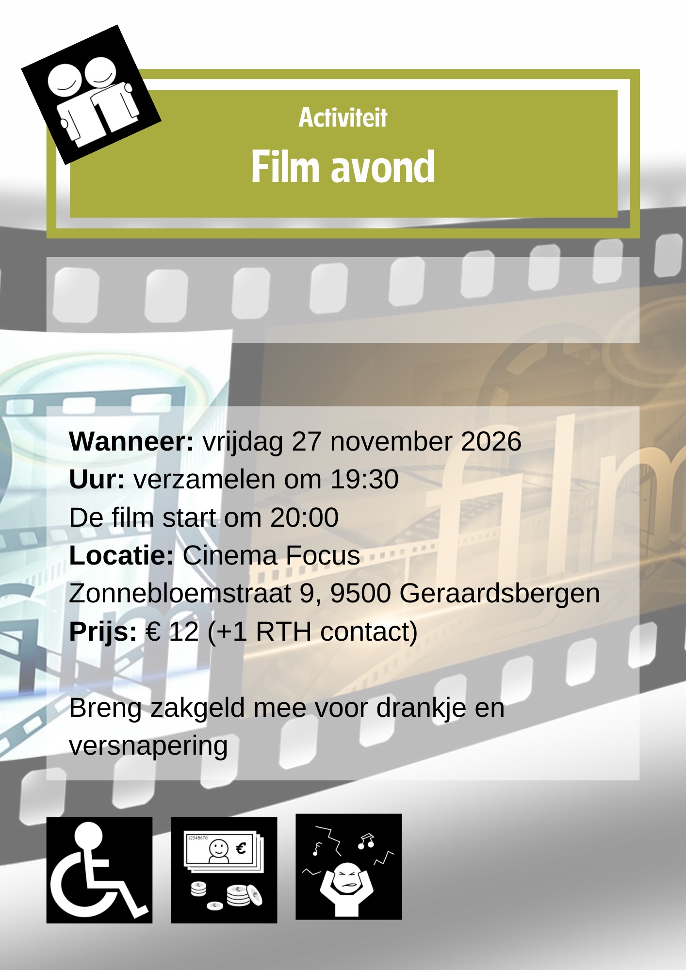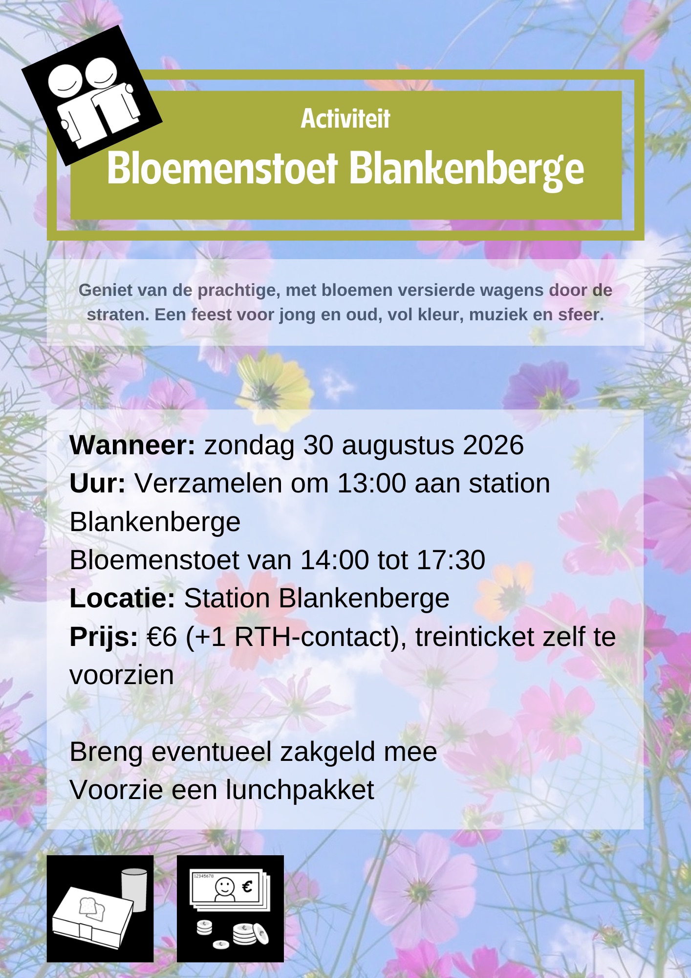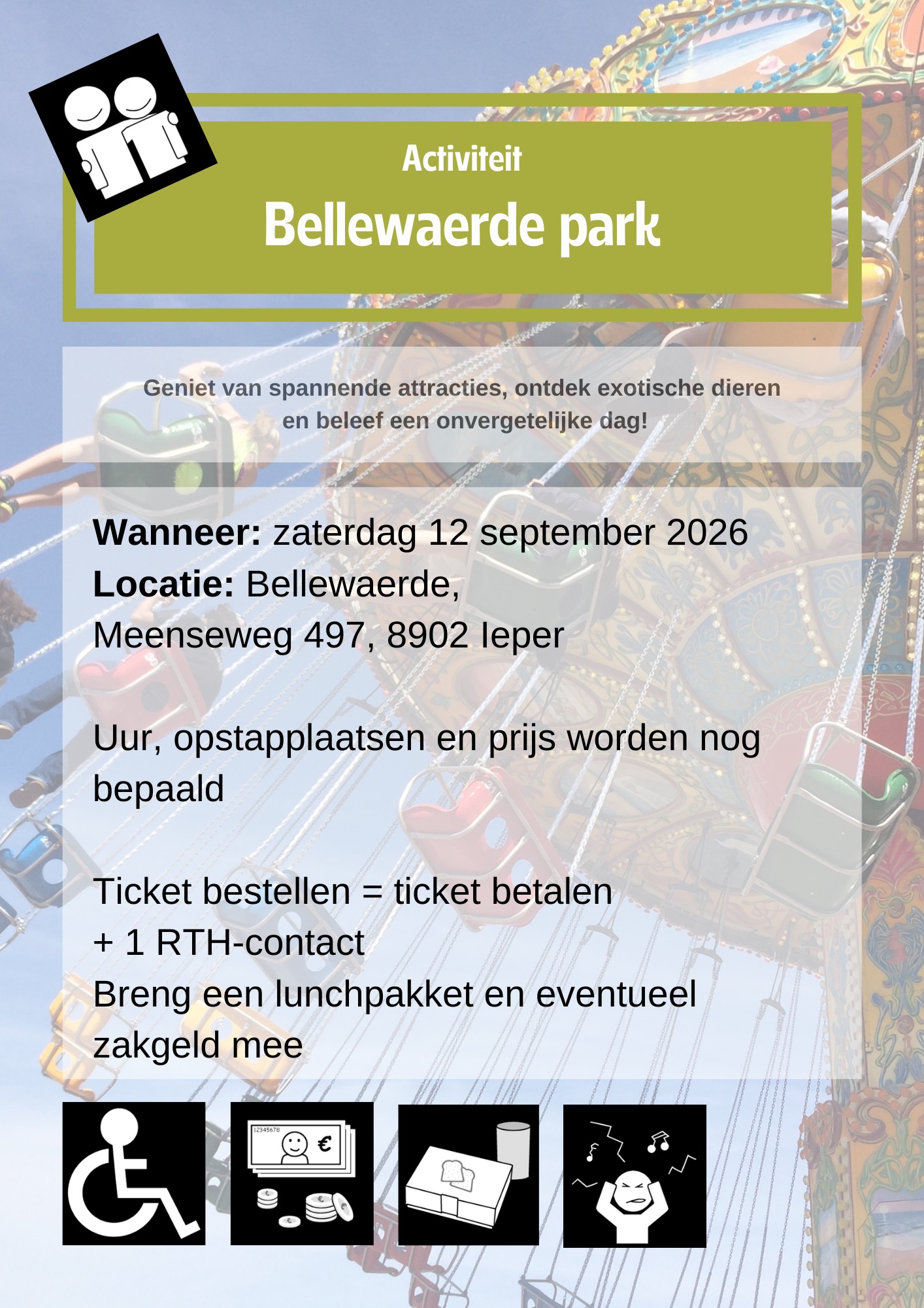 Wanneer er een extra persoon mee mag, zal dit vermeld worden bij de activiteit aan de hand van een pictogram.