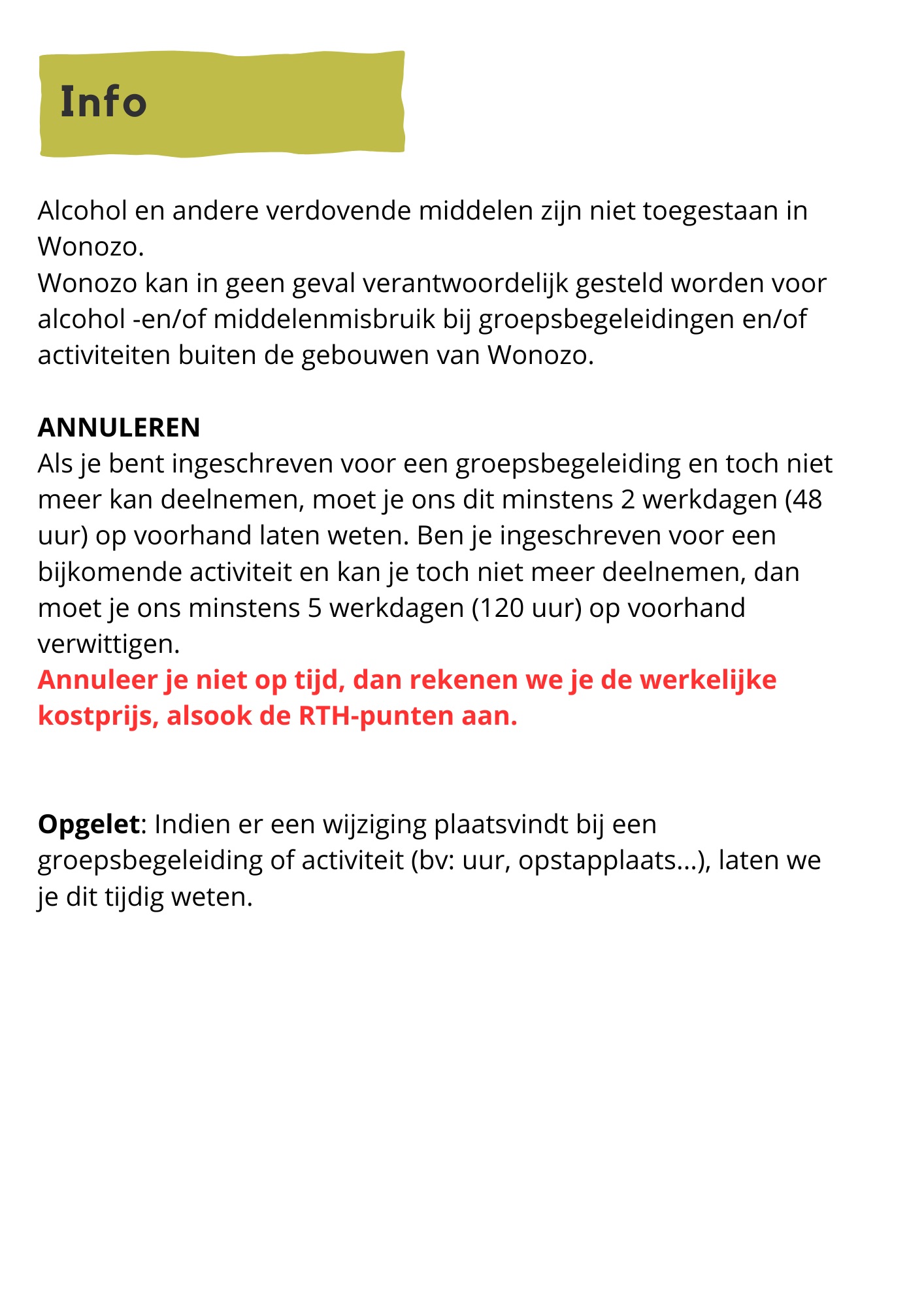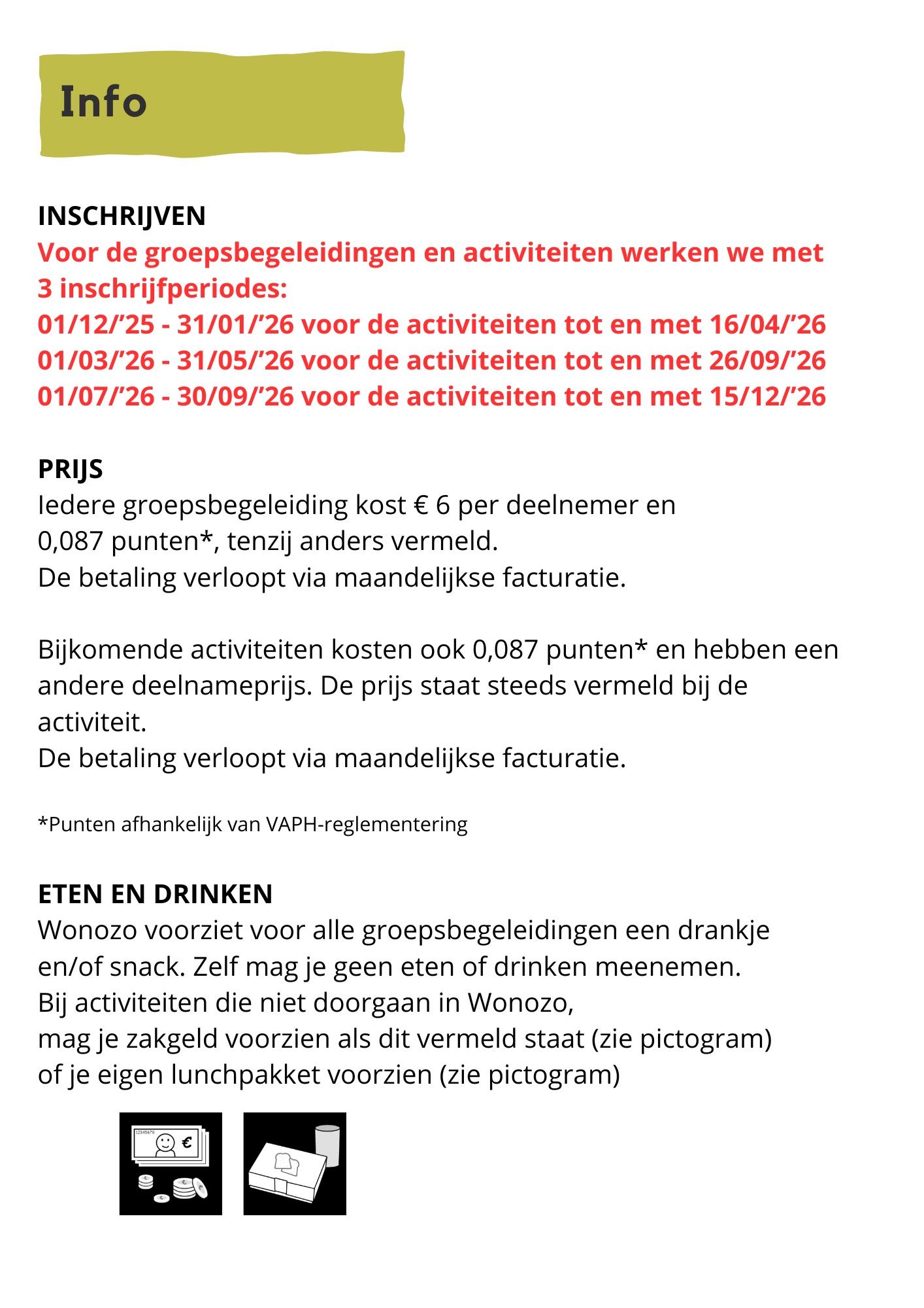 Groepsbegeleidingen zijn voor cliënten van Wonozo en personen ingeschreven op de wachtlijst van Wonozo.